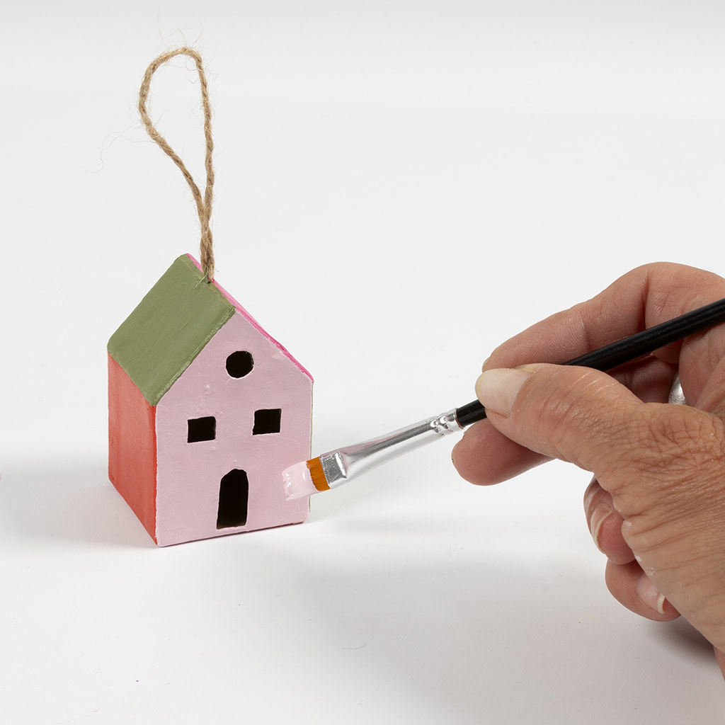 Verf de huizen in vrolijke, frisse kleuren en geef ze een uniek karakter met grafische patronen die je eenvoudig maakt met de meegeleverde schilderstape. Tot slot kun je de daken versieren met een laagje sneeuw, zodat elk huisje een feestelijk wintergevoel uitstraalt. Het resultaat is een set originele, handgemaakte kerstdecoratie die perfect past bij jouw interieur.