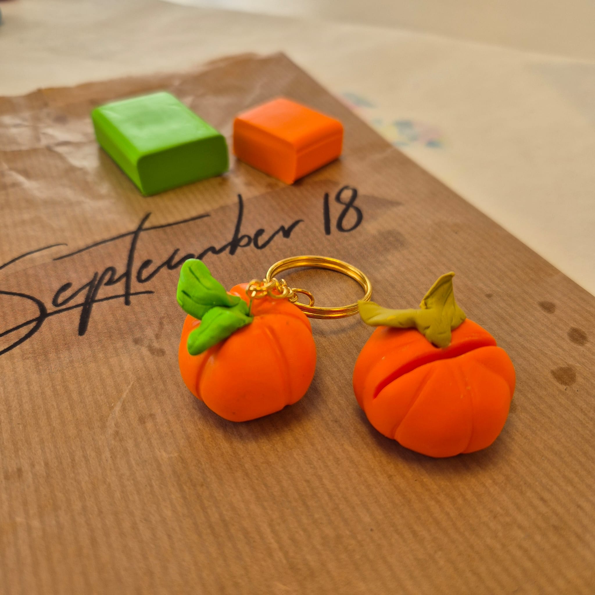 DIY set sleutelhangers | Pompoen van klei
