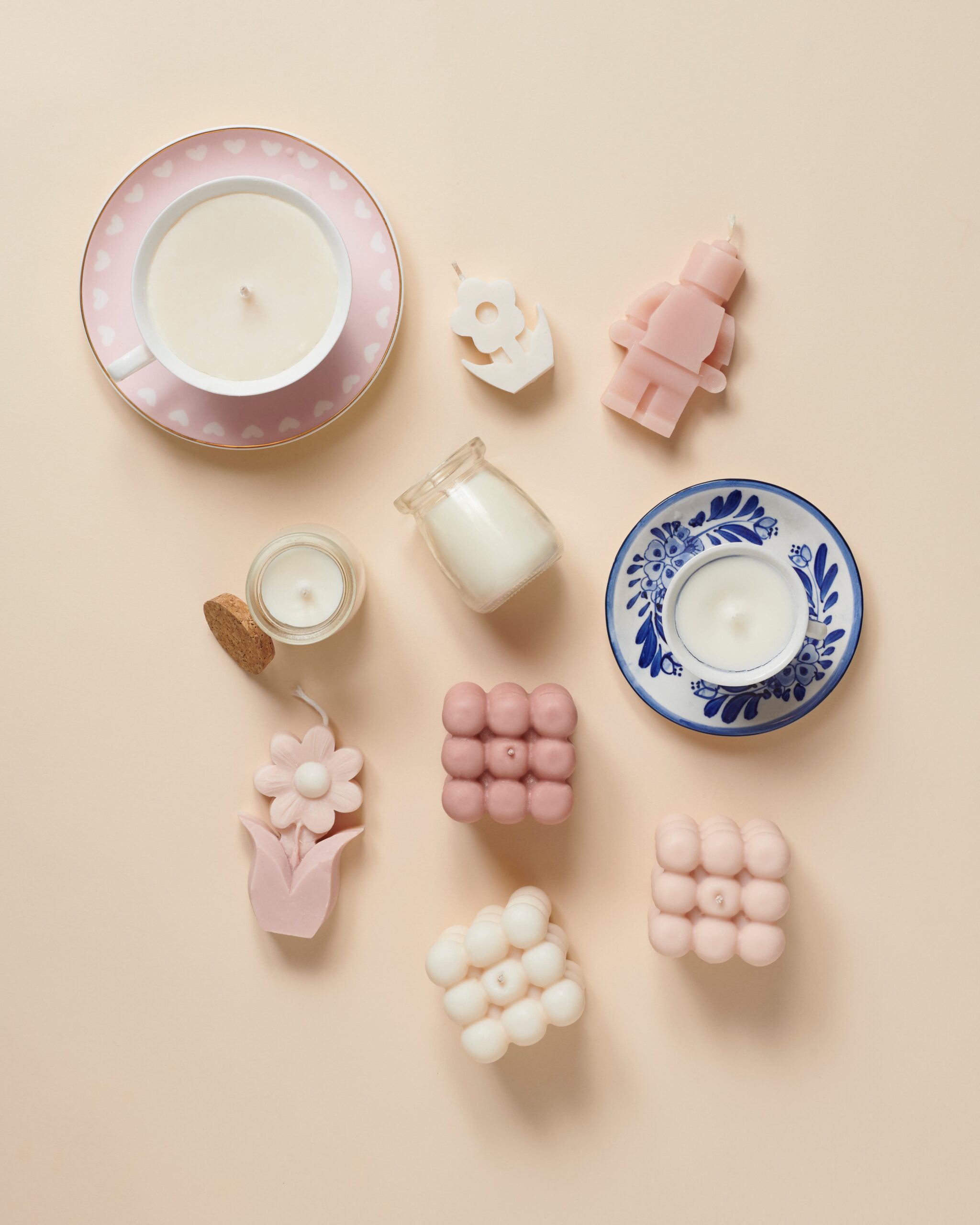 Gebruik leuke vintage potjes, oud servies, schaaltjes of schelpen om jouw kaarsen een persoonlijke uitstraling te geven. Zo maak je niet alleen iets moois, maar geef je materialen ook een tweede leven.