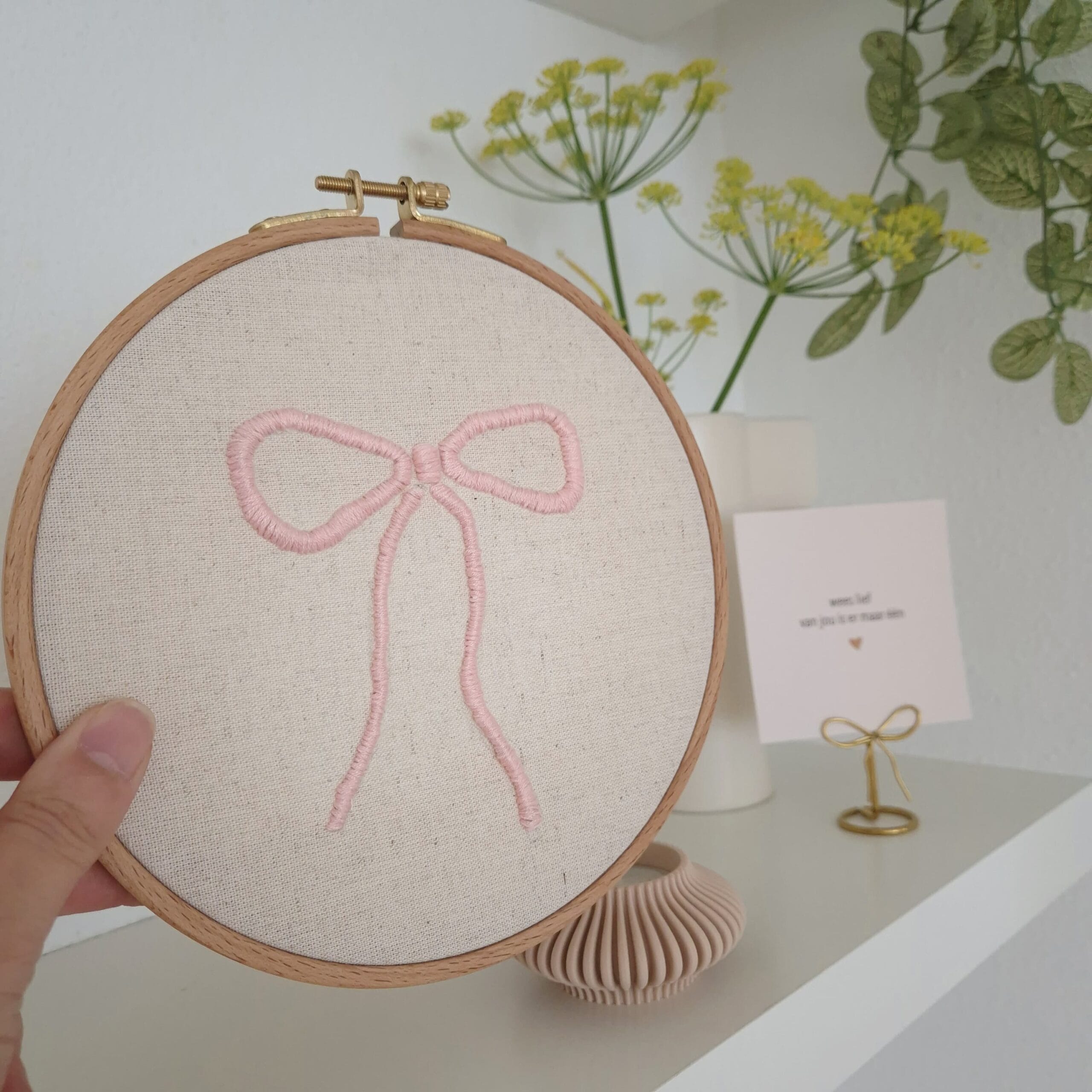 Maak met behulp van een lijmpistool een 3D borduur project. Wij gebruiken de houten ring uit de borduurbox, het stuk canvas, borduurdraad en een borduurnaald. Samen met dit sjabloon heb je in no time een super leuke 3D strik geborduurd.