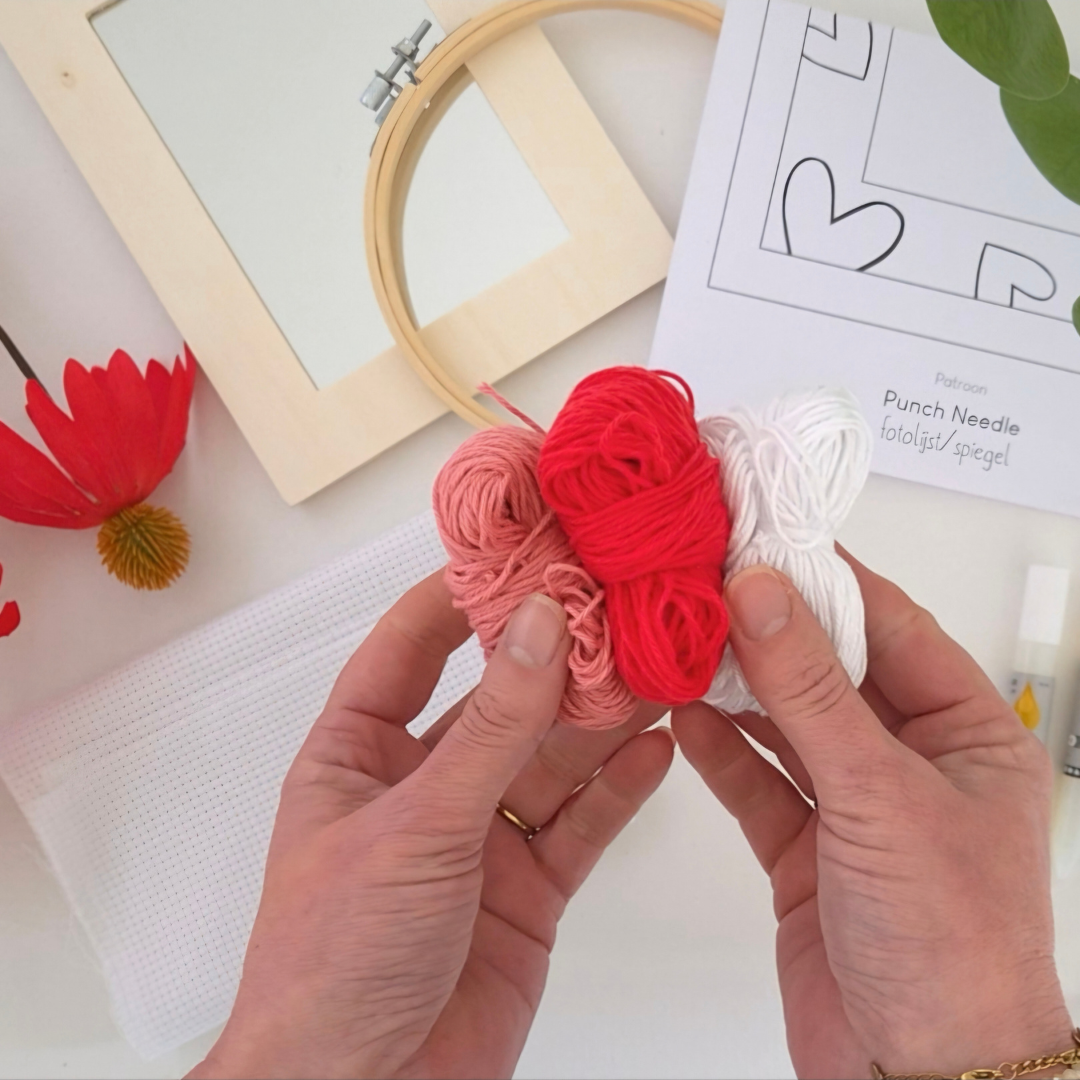 Toen ik in 2025 aan onze creatieve leden in de September18 Community vroeg: Wat zou je voor techniek willen leren in 2026? Werd punchen verrassend veel genoemd! Het leek mij ook onwijs leuk om hier mee aan de slag te gaan. In februari is het ook Valentijn 😉 dus een beetje extra liefde in de box kan geen kwaad. De ontwerpen zijn in samenwerking met Debbie van @like.it.like.deb en zij maakte voor de spiegellijst ontwerpen in hartjes, bloemen en abstract. Ook kun je natuurlijk je eigen ontwerp maken. Voor de onderzetters zijn er ontwerpen in een hartje, koffie, bloem en smiley.