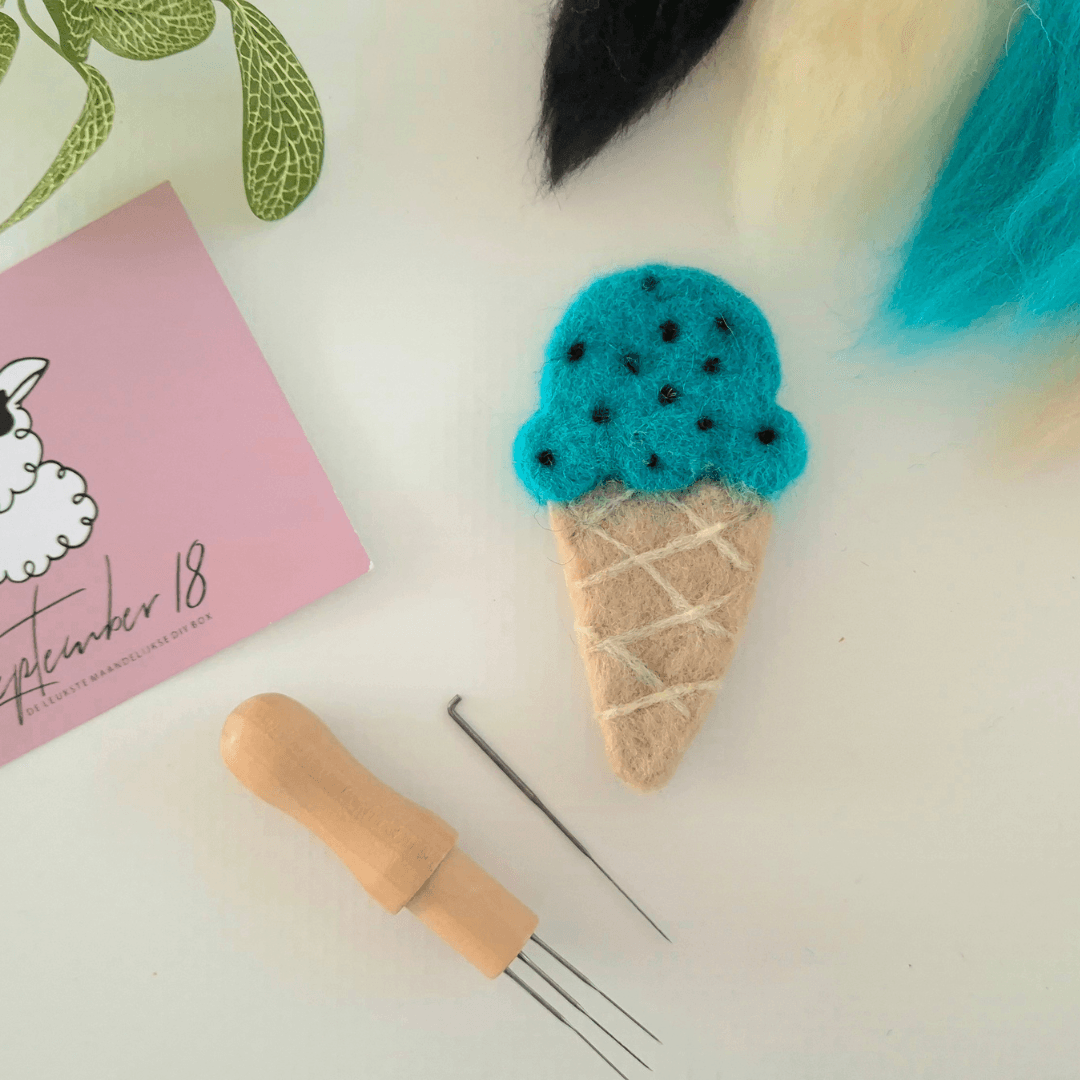 Bij prik vilten gebruik je een speciale prik naald, die ook in dit pakketje zit. Deze naald zorgt ervoor dat de lontwol vezels met elkaar verbonden worden. De naald heeft speciale weerhaakjes. Door bijvoorbeeld op een sponsje te prikken of een vilt borstel, kun je door de beweging op en neer door de losse wol vezels aan elkaar prikken.